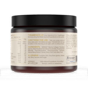 Directions for use: Adults – Take one scoop twice daily. THEAGEHACK LIV can be taken in the morning or at night, with or without food.